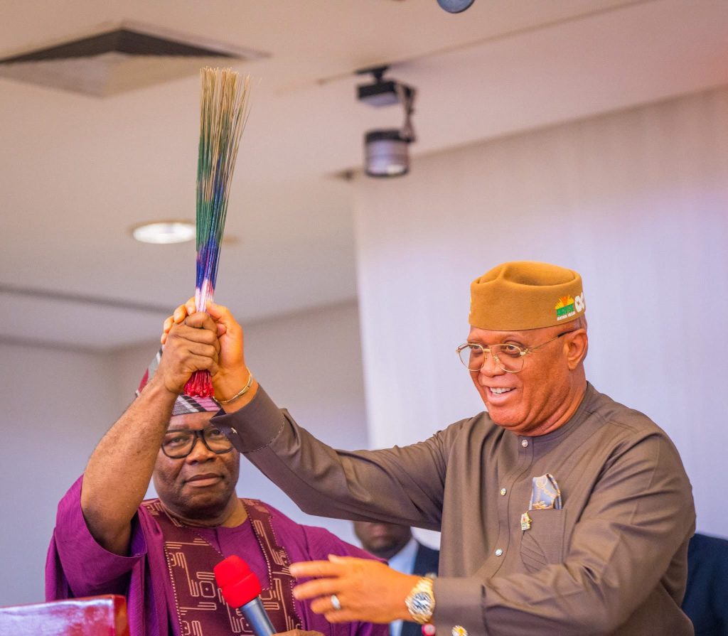 Senate President, Godswill Akpabio, officially handed over the political structure of the All Progressives Congress (APC) in Akwa Ibom State to Governor Umo Eno. This took place during a stakeholders’ meeting at the Government House Banquet Hall, Uyo, on Saturday.